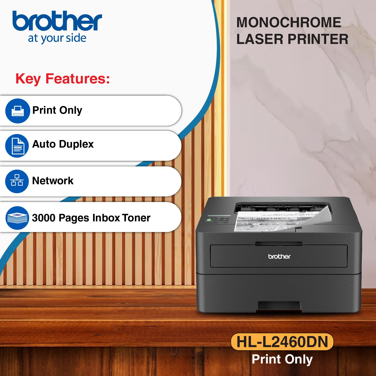 Details: Key features of the HL-L2460DN include automatic duplex printing, which helps reduce paper usage by printing on both sides of the page. The printer also offers versatile connectivity options, including built-in Ethernet for easy network sharing among multiple users and a high-speed USB 2.0 interface.