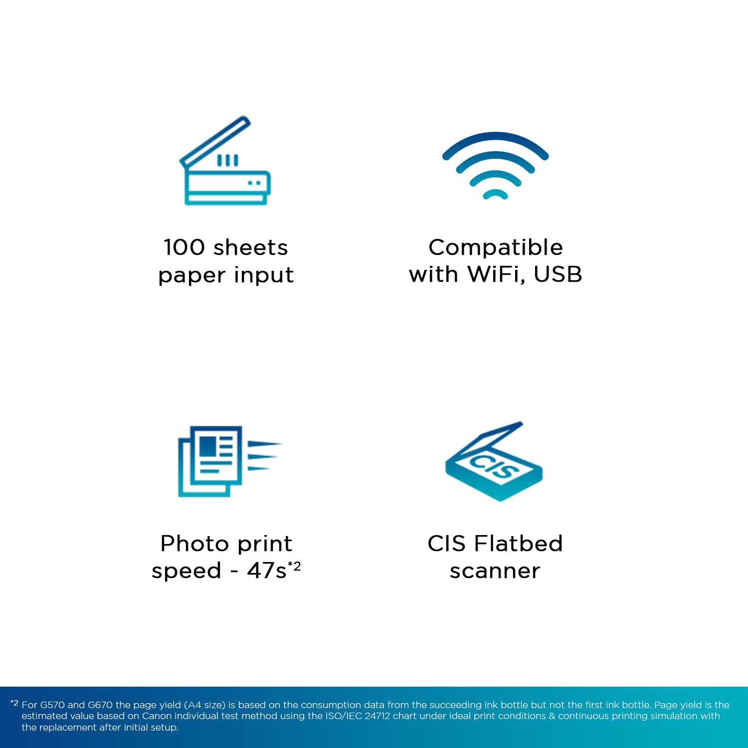 Canon PIXMA MegaTank G670 6 Colour, Print,Scan,Copy, High Volume Printing Photo Printer