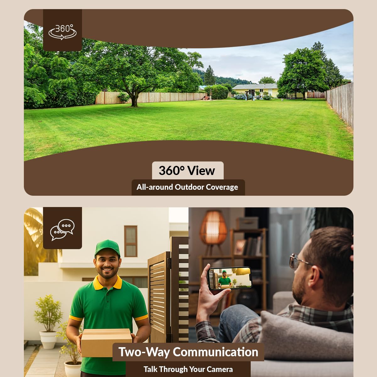 - Pan & Tilt Outdoor Camera with 360° View – Covers wide outdoor zones by rotating across 360° to eliminate blind spots; reduces need for multiple cctv cameras for home outdoor.
