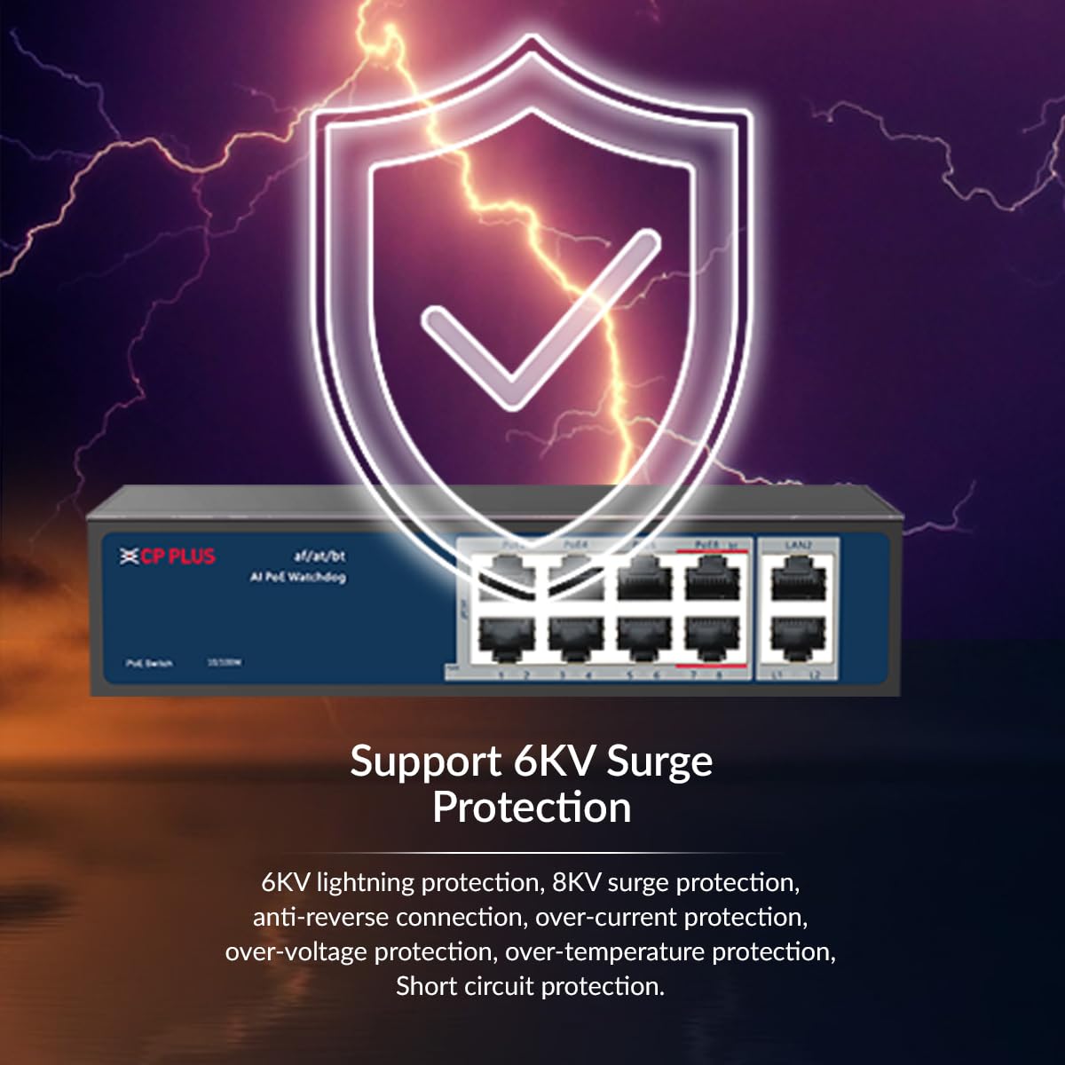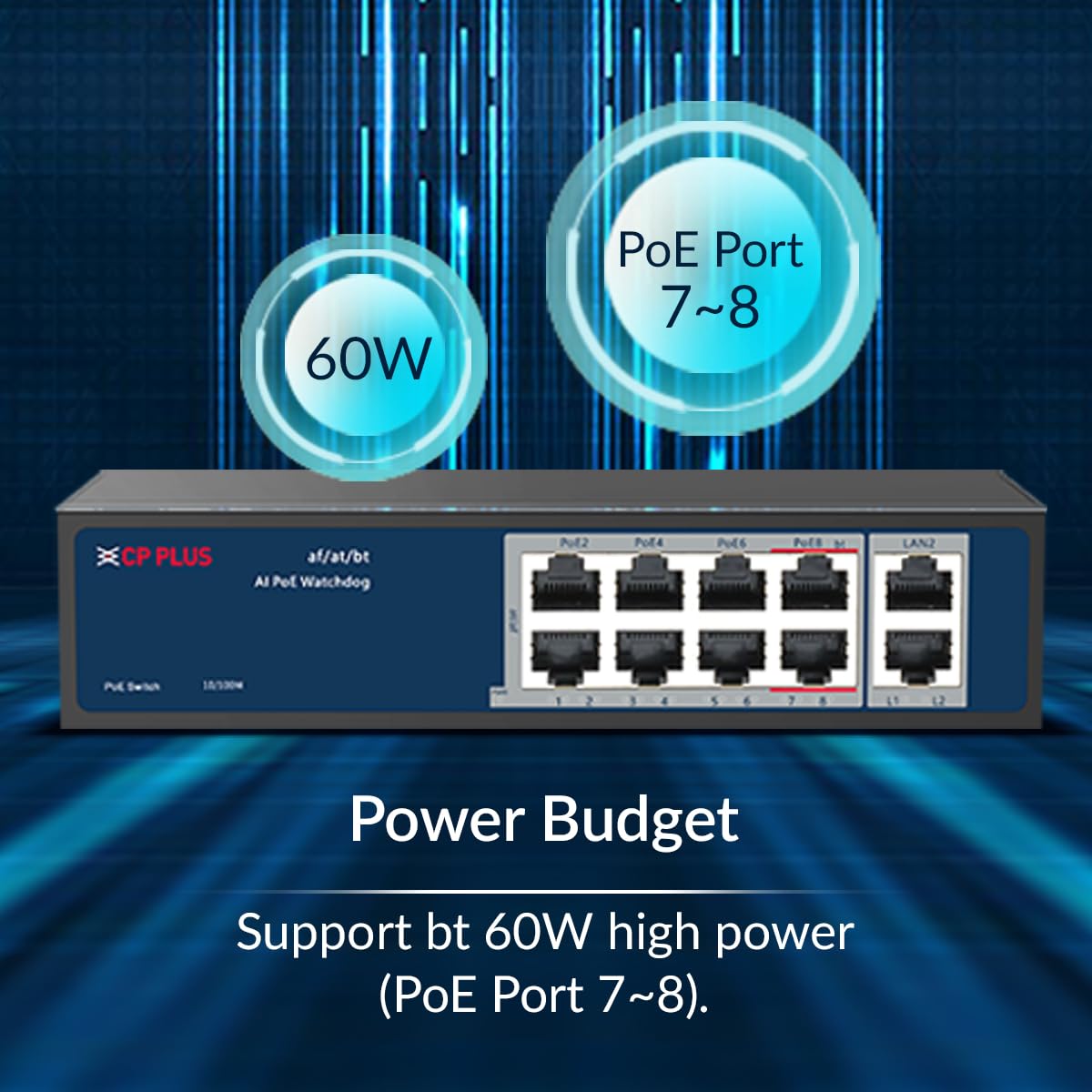 CP PLUS 8 Port PoE + 2 Uplink Port CP-ANW-HPU8H2-N12 PoE