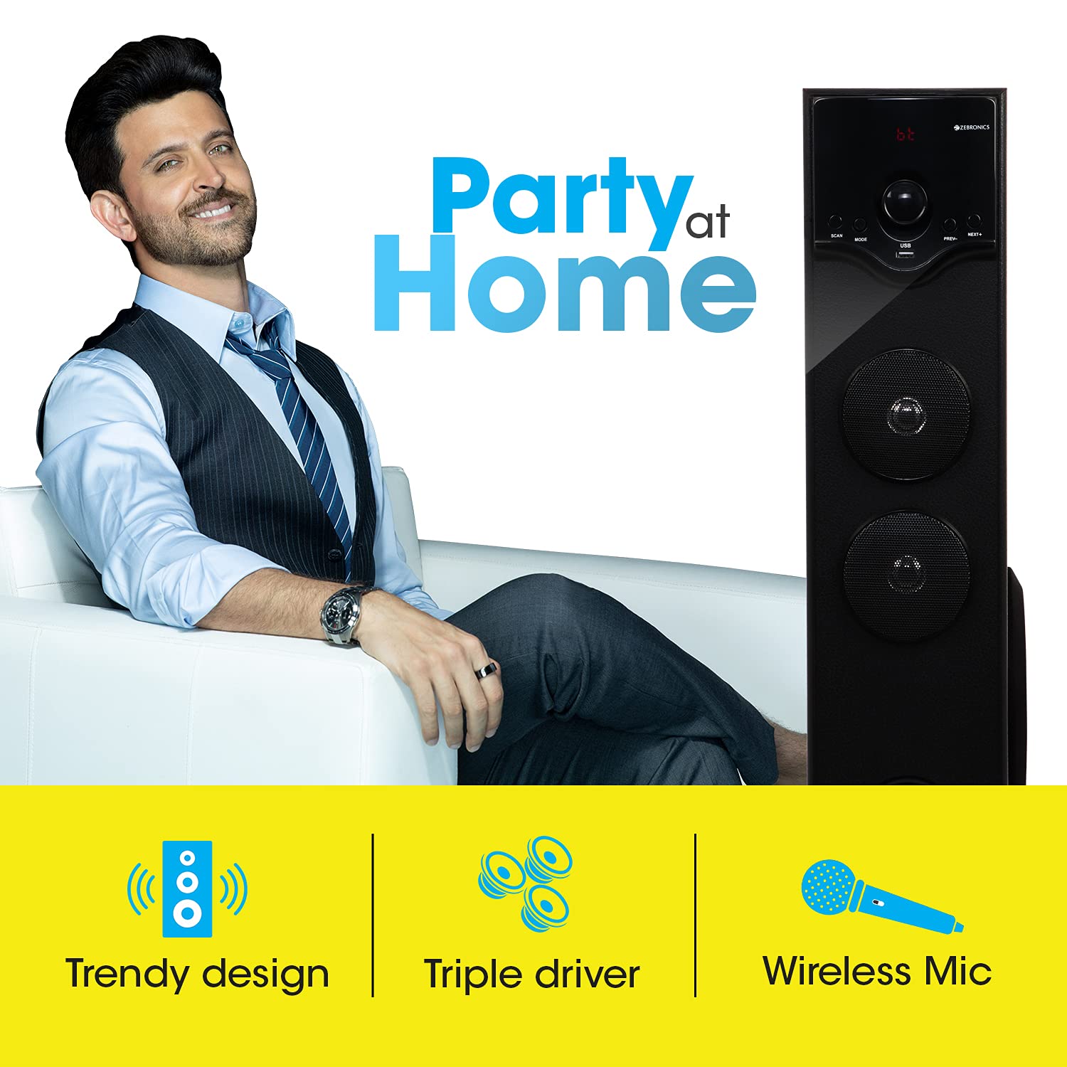 - - 50W Tower Speaker with Wireless Mic;- Triple Drivers; - Easy Controls: The speaker comes with controls for media along with volume control knob;- Digital Display